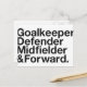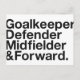 Torhüter, Verteidiger, Mittelfeldspieler & Vorwärts.