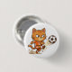 Runder Pinback-Button mit einer orangen Katze, die einen Fußball mit intensiver Miene kickt. Ein lustiger sportlicher Button für Rucksäcke, Jacken oder Casual Wear.