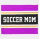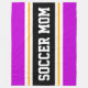 Dieses sportliche, sportliche Design zeichnet sich durch fett gedruckte SOCCER-MAMA in einem farbenprächtigen, schwarzen Streifen mit doppelweißen und gelben Rennstreifen gegen leuchtend rosa Außenstreifen aus. Der Text in diesem Design kann personalisiert sein.