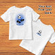 A fun t-shirt with a soccer theme front and back. The design has soccer boots and a ball on a soft blue background on the front, with a further soccer ball on the back. You can customize the caption on the front of the t-shirt which reads "SOCCER STAR" in blue text. Add your preferred name or other text on the back too.