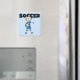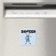 Phantastische Fußball-Design-T - Shirt, Karten, Aufkleber, Tasse, und andere Fußball-Bekleidung und Geschenkartikel mit einem Strichmännchen-Jungen-Fußball-Spieler mit einem Fußball und schwarzen Text, der "SOCCER"!