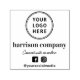 Promotionale Briefmarke für Ihr Unternehmen mit Ihrem Logo, Ihrem Firmennamen in fett minimaler moderner Typografie und Ihren Facebook und Instragram Social Media Handles für Kunden und Kunden, um mit Ihnen online zu verbinden.