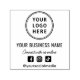 Promotionale Briefmarke für Ihr Unternehmen mit Ihrem Logo, Ihrem Firmennamen und Ihrer Facebook-, Instragram- und Ticktok-Social-Media-Adresse für Kunden und Kunden, die sich online mit Ihnen verbinden möchten.