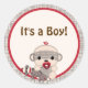 SOCK MONKEY Baby Shower leere Round BOY #5 Runder Aufkleber