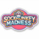 Farbenfrohe und lustige Sock Monkey Madness Logo Sticker.