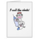 Sockenaffekrankenschwester-Ausrüstungsbeschreibungen eine Sockenaffekrankenschwester mit einer großen hypodermatischen Nadel und Text, der "mich liest, nennen die Schüsse!" auf Krankenschwester T - Shirts, Knöpfen, Hoodies, Karten, Hüten, Aufklebern, Krankenschwestermagneten, Schlüsselanhänger und mehr.