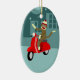 Karo heraus treffen Affen reitet seinen roten Vintagen Roller beim Geben Ihnen einer Welle hallo hart! Diese Sockenaffeillustration würde für Vespa- und Affefans ebenso groß sein.