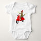 Karo heraus treffen Affen reitet seinen roten Vintagen Vesparoller beim Geben Ihnen einer Welle hallo hart! Diese Sockenaffeillustration würde für Vespa- und Affefans ebenso groß sein.