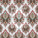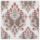 Baumwollgewebe druckte mit einem wiederholenden Damastmuster in einem Sockenaffethema, -ROT, -creme, -BRAUN und -SCHWARZEN. Passend für Lose Handwerk, möglicherweise niedliche Vorhänge oder Kissen in einem Raum des Kindes oder in einem Spielzimmer.