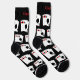 This pair of playing cards design socks are a soft fabric covering for the feet, typically worn inside shoes to provide comfort, warmth, and absorbency. You can customise this pair of socks with any text of your choice. Should you require any help with customising then contact us through the message link on this page. Four aces design pair of socks.