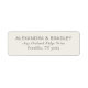 Diese Rücksende-Adressetiketten weisen ein minimalistisches und sauberes Layout mit zentriertem Text auf einem hellen Hintergrund auf, wodurch ein elegantes und übersichtliches Erscheinungsbild entsteht. Das Design verwendet eine weiche, neutrale graue Farbpalette für den Text vor einem weißen oder cremefarbenen Hintergrund, wodurch die Lesbarkeit verbessert und ein anspruchsvoller Ton beibehalten wird. Die Typografie spielt eine zentrale Rolle, mit fetter Serifenschrift für Namen und leichterer serifenloser Schrift für Adressen, was eine moderne und dennoch zeitlose Ästhetik bietet. Perfekt für diejenigen, die Einfachheit und Klarheit schätzen, vermitteln diese Etiketten einen Sinn für Professionalität und Raffinesse.