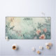 This pastoral customizable desk mat features a soft and dreamy watercolor scene of blooming wildflowers and a perched songbird on a branch. gentle pastel tones of blue, pink, and green create a tranquil and romantic mood. suitable for wedding stationery, botanical backdrops, and seasonal greeting designs. you can customize the text.