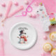 Ein lustiges Wintersaisondesign mit einem kleinen runden Schneemann aus schmelzenden Marshmallows. Gooey Marshmallows puddelten um ihn herum mit weichen rosa Mittelpunkten. Er trägt einen Tophut und einen Polka Dot Schal. Die Botschaft lautet "weich und süß, Marshmallow Leckerei. Stellen Sie sich diese Teller vor, die ein Marshmallow-Goodie halten, damit die Kinder während der Ferien Spaß haben können.