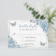 Soft Baby Blue Floral Rose Quinceañera Butterfly RSVP Karte