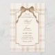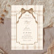 Soft beige brown bow tartan plaid wedding einladung