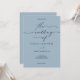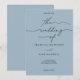 Treten Sie ein in die Welt der ruhigen Eleganz und der modernen Romantik mit unserer schönen Soft Blue und Black Wedding Einladung. Dieses Design ist mehr als nur eine Ankündigung, es ist ein ruhiger Vorgeschmack auf Ihren besonderen Tag, perfekt kombiniert zeitgenössische Einfachheit mit einer beruhigenden Farbpalette. Der sanfte, himmelähnliche, weiche blaue Hintergrund ruft ein Gefühl von Ruhe, Reinheit und Weite hervor und bietet eine raffinierte und einladende Leinwand für den knackigen schwarzen Text. Das elegante handgeschriebene Skript für "die Hochzeit von" fügt einen wunderschönen künstlerischen Fluss und persönliche Touch hinzu, während der saubere Sans-Serif-Schriftart für Ihre entscheidenden Details eine moderne Lesbarkeit gewährleistet.