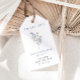 Minimalistische Blütendusche dank Geschenketiketten mit einem zarten Blumenstrauß in Aquarellfarben mit weichen pastellfarbenen staubblauen und weißen Blume.