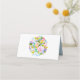 Schöne romantische Hochzeitsfeier Platzkarte mehrfarbige Blume mit sanften blauen Akzenten auf einem wunderschönen Blumenhintergrund, damit Sie sich mit Ihren Hochzeitstag Details. Dies ist Teil einer Hochzeitssuite, Schau dir den ganzen Anzug für andere passende Blumendesigns an. Großartiges Design aus TLS Designs.