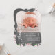 Diese Fotokarte für Taufe Die Einladung enthält ein elegantes Layout von weichen rosa Erbsen, ein Spitzen-Kreuz, Chalkboard-Hintergrund und den Namen Ihres Kindes in einem hübschen Schriftart.