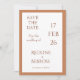 A refined and modern Save the Date card featuring a rich bright-copper color palette paired with clean, elegant typography. Designed for couples seeking a warm yet contemporary aesthetic, this customizable announcement sets the perfect tone for a stylish and sophisticated wedding celebration.