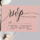 Lass deine Liebe mit einer Touch von eleganter Einfachheit zu blühen. Diese weiche korallenrosa RSVP-Karte verfügt über einen modernen Kalligraphie-Script-Schriftart, der Ihrer Hochzeitsarbeit eine Touch zeitloser Grazie verleiht. Das minimalistische Design behalte den Fokus auf die UAWG Details und sorgt für eine klare und stilvolle Reaktion Ihrer Gäste. Diese vielseitige RSVP-Karte fügt sich perfekt in Ihr minimalistisches Hochzeitstil ein und verbindet sich mühelos mit romantischer, schicker, moderner oder anspruchsvoller Ästhetik. Personalisieren Sie es mit Ihren Namen und Hochzeitsdetails, um eine kohärente Antwort-Suite für Ihren besonderen Tag zu schaffen.