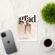 This soft, editorial-style graduation announcement template features a full-bleed photo design paired with bold “grad” typography for a modern yet timeless look. The front showcases a large portrait photo with space for a customizable class year, graduate name, and school, creating an elegant and photo-forward announcement. The back includes room for additional details such as a personal message, graduation information, or party details, making it both functional and stylish. Perfect for high school or college graduates, this versatile template is ideal for seniors who want a clean, sophisticated way to share their milestone.