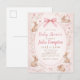 Soft Floral Bunny Baby Shower Invitation Postcard with Bow Pattern Back