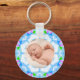 Weiche Hübsche Pastelle Custom Weihnachts Foto Picture Ornament Key Ring. Jolly und festliche Pastelle Lila, Grün und Pink Custom Christmas Foto Picture Frame Round Christmas Schlüsselanhänger. Ein zartes, buntes Ornament für Ihren winterblauen und grünen mehrfarbigen Feinschmecker, der Tropfen zeichne. Das Rahmendesign ist ein fröhliches geometrisches Abstraktionsmuster, das traditionelle festliche Farbblockdesigns annimmt. In Pastellfarben von Winterblau mit leuchtend grünem Baum und hübsch rosa für ein Winterwunderland. Personalisieren Sie es, indem Sie die beiden Fotos vorne und hinten mit Ihrem eigenen ersetzen, um ein frühes Geschenk für Familie und Freunde zu machen, um das erste Weihnachtsfest eines Babys oder Haustieres zu feiern. Das Foto zeigt ein Baby, das schläft. Fischen Sie Ihre Yuletide-Erinnerungen. Ein tolles Geschenk für die besten Freunde, Brüder und Schwestern, Neueltern oder Großeltern. Ein preisgünstiges Sake-Geschenk für Familienfeiern oder erste Feste.