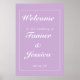 Hübsches, modernes, minimalistisches und trendiges Hochzeitsposter mit lila Hintergrund (Pantone's 2022 color pick "Orchid Bloom") mit weißen, anpassbaren Textblöcken in modernen Schriftart