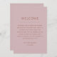 This double sided wedding card in soft mauve pink is designed for couples who appreciate subtle color, thoughtful organization, and refined simplicity. The muted background feels calm and balanced, offering a modern alternative to traditional blush tones while still keeping a soft, romantic mood. One side of the card features a wedding day timeline, presenting the sequence of events in a clear and easy to follow format. It works as a gentle schedule for your guests, helping them understand the flow of the day without drawing attention away from the celebration itself. Everything feels intentional, quiet, and well paced. The reverse side acts as a welcome card, completing the piece as a full wedding itinerary rather than a single use schedule. This color is especially suited for modern romantic weddings, minimal elegant celebrations, and indoor or evening events, as well as spring and early fall weddings. Available as both a printed card and a digital download.