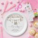Diese Teller zeichnen sich durch eine ansprechende Abbildung eines niedlichen, kleinen Gentleman Anzugs aus, begleitet von charmanten Babyelementen wie Spielzeug und Schuhen, die alle in sanften, abgedämpften, neutralen Tönen gehalten werden.