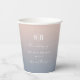 Soft Ombre Blush Pink Dusty Blue Wedding Monogram Personalisiert Paper Cups. Diese moderne Hochzeit oder jedes Ereignis Papier Becher Design ist einfach und minimal mit einem chic ombre Farbverlauf verblassen und trendige Signatur Kalligraphie Skript-Schriftart. Die neue Farbpalette für Hochzeiten. Auch ein einfaches Monogramm oben. Die Ombre Minimal Wedding Sammlung ist sicher, Ihre Hochzeit unvergesslich und schön zu machen! Um mehr zu sehen, suchen Sie nach Chic Paperie's Hochzeitskollektionen 2022, um alle über Trend Designs und Hochzeitsfarben für dieses Jahr zu sehen.