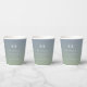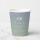 Soft Ombre Dusty Blue & Leaf Green Wedding Monogram Personalisiert Paper Cups. Diese moderne Hochzeit oder jedes Ereignis Papier Becher Design ist einfach und minimal mit einem chic ombre Farbverlauf verblassen und trendige Signatur Kalligraphie Skript-Schriftart. Die neue Farbpalette für Hochzeiten. Auch ein einfaches Monogramm oben. Die Ombre Minimal Wedding Sammlung ist sicher, Ihre Hochzeit unvergesslich und schön zu machen! Um mehr zu sehen, suchen Sie nach Chic Paperie's Hochzeitskollektionen 2022, um alle über Trend Designs und Hochzeitsfarben für dieses Jahr zu sehen.