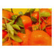 Dieses Bild hat einen Haufen Orangen mit gelbem Hintergrund auf einem Poster