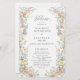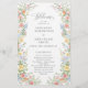 Mit diesem minimalistischen Blumenprogramm, das eine weiche Aquarellgrenze aus handbemalten Blüten aufweist, verleihen Sie Ihrer Hochzeit zeitlosen Charme und romantische Eleganz. Das zarte Blumengesteck umfasst Pastellpinke, Schmettergelbe, weiche Lavendel, Baby-Blues und Salbei-Grüntöne, die in der Mitte einen anmutigen Rahmen für Ihren individuellen Text bilden. Dieses Design ist perfekt für Frühjahr- oder Gartenhochzeiten geeignet und verbindet Vintage botanische Schönheit mit einer modernen minimalistischen Gestaltung. Vollständig editierbar mit Zazzles Designtools - passen Sie Schriftart, Formulierungen und Layouts an, um sie einzigartig zu gestalten. Für die Anpassung oder weitere Produkte mit diesem Design, bitte kontaktieren Sie mich.