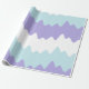 A smooth abstract pattern featuring flowing wavy stripes in soft light blue, lavender, and white. The gentle curves create a calm and airy pastel look.