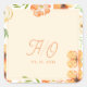 Soft Peach Garden Floral Monogram Wedding Quadratischer Aufkleber