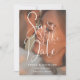 Diese weiche pfirsichelegante Skripthochzeit speichern Sie das Datum Einladung kann mit Ihren 2 besonderen Fotos und Hochzeitstag Informationen personalisiert werden. Entwickelt von Thisisnotme©