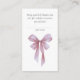 Soft Pink Bow Girl Baby Shower Diaper Raffle Enclosure Card