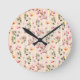 Soft Pink Floral Stripe Pattern Runde Wanduhr
