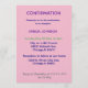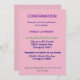 A clean, sweet, and simple invitation for a daughter’s Confirmation. Features purple and green text on a soft pink background. Easy-to-read layout for all service and RSVP information.
