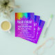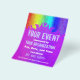 Werben Sie für Ihre Veranstaltung mit diesen flammenden lila Regenbogen-Flyern. Vollständig anpassbar - füllen Sie einfach Ihre Informationen aus. Kleine, glänzende, zweiseitige Flyer, die durch Regenbogenkunst hervorgehoben werden - ein sanfter Regenbogen mit subtilen Hintergrundmustern. Farbenfrohe Regenbogengestaltung.
