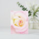 Weich bis rosa bis gelblich rosa Rose nahes Foto mit einem teilweise verborgenen, blumenbestandenen Postkarton