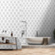 Schönes Maschenmuster in horizontalen Zeilen. Jede Zeile wird "verrechnet" oder zwischen der obigen Zeile verschoben, auch als Ziegelmuster bezeichnet. Das weiche Küstendesign eignet sich für jedes Zimmer, besonders für das Kinderzimmer eines Babys. Dieses Muster ist in Grau oder Pastellrot erhältlich.
