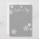 Stellen Sie sich Ihr eigenes Bild in diesen weichen Schneeflocke-Rahmen, der so gestaltet ist, dass Teile Ihres flüchtigen Blicks gelassen werden. Die Botschaft und die Rückseite sind in einem eleganten silbergrauen Ton gedruckt. Die hintere Nachricht lautet "Liebe und Freude" und hat genügend Platz, um Ihnen persönliche Nachrichten zukommen zu lassen, wenn Sie sich dafür entscheiden.