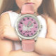 Kinderuhr aus Edelstahl mit rosa Lederarmband