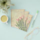 Original Foto von drei frisch geschnittenen rosa Tulpen und grünen Blätter in einem Vintagen Stil-Design mit viel Kopierraum für Ihren eigenen Text, oder einfach verlassen, wie es ist ohne Text. Entwickelt mit einer subtilen, sanften, leichteren Touch für den Druck, um wirklich herausragend zu sein. Ideal für künstlerische Scrapbooking und viele andere Anwendungen als ein schöner Flyer im Frühjahr oder Sommer. Die Größe ist kleiner~großartiges Notizpapier!