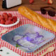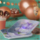 Diese Papiertafel ist für viele verschiedene Anlässe geeignet und mit einem lila-weißen Iris mit malerischem Hintergrund versehen.