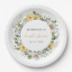 Ein runder Rahmen mit wilden Blume, Blätter und Gänseblümchen in zarter Aquarellfarbenpalette aus Elfenbein, Salbeigrün, Gelb und Orange schmücken dieses romantische und rustikale Brautparty mit mit Monogramm Papieren-Tellern. Für weitere Anpassungen oder Matching-Material schreiben Sie mir bitte unter citronelladesign@gmail.com