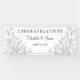 Ein hübsches Hochzeitsbanner, entworfen mit Soft Willows und Branches in den Tönen Lilac und Scottish Heather. Vorder beinhaltet Text: GRATULATIONS, Braut und Groom's First Names and Wedding Date. Weiße Gestaltung auf weißem Hintergrund mit Oberteil und Unterteil des Lilac Strips. Um Ihre persönlichen Wünsche zu erfüllen, fügen Sie einfach Ihre Angaben zur Hochzeit in unsere schrittweise Vorlage ein. Schauen Sie sich unbedingt die gesamte Soft Willows Lilac - Scottish Heather Wedding Collection an.
